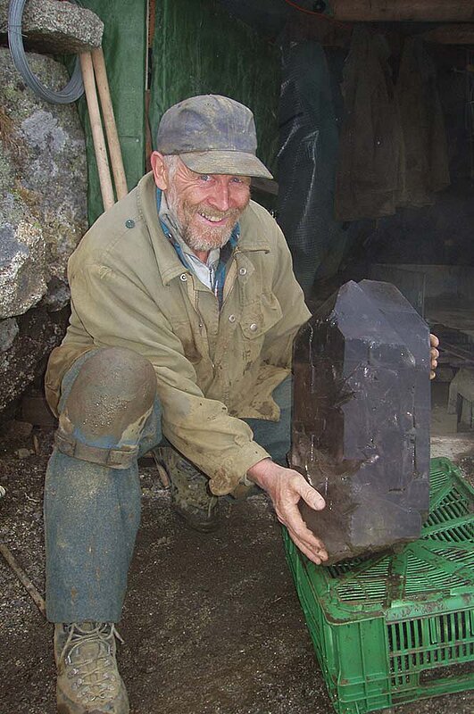 In der Folge bescherte ihnen der Berg Tonnen von Kristallen. Die grösste Stufe hatte ein Gewicht von ca. 200 kg, mit Spitzen bis zu einer Länge von ca. 25 cm. Die Fachwelt redete vom Jahrhundertfund, doch es sollte erst der Anfang einer unglaublichen Geschichte sein.